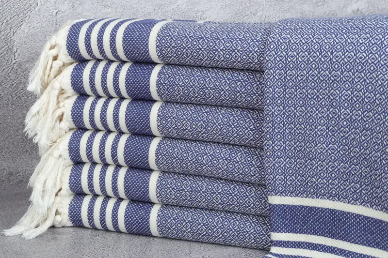 Personalized Turkish Hand Towel Navy Diamond, Beige, 16x32 Inches