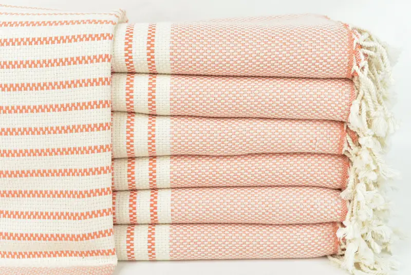 Custom Turkish Beach Towel Orange Stripes, Beige, 40x75 Inches