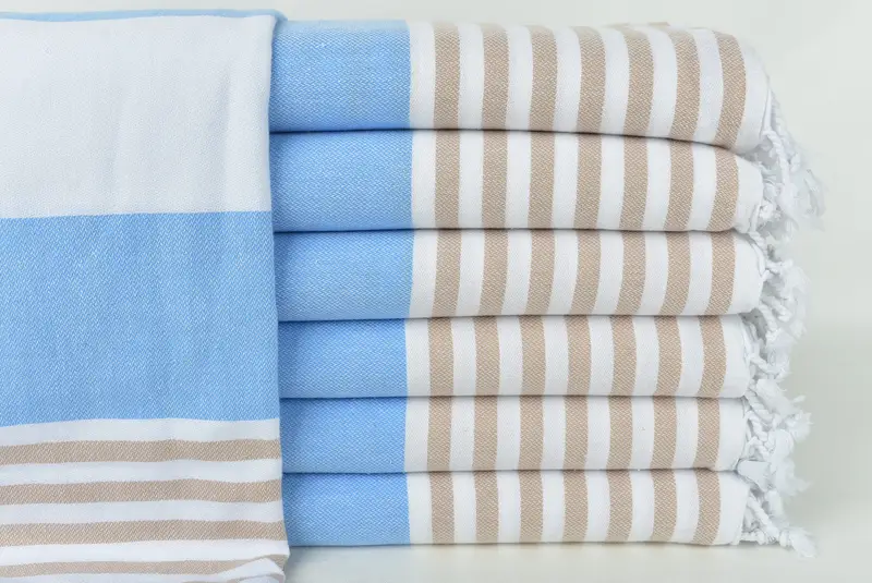 Beach Towel Custom Baby Blue-Beige Striped, Turkish Cotton, 40x71 Inches