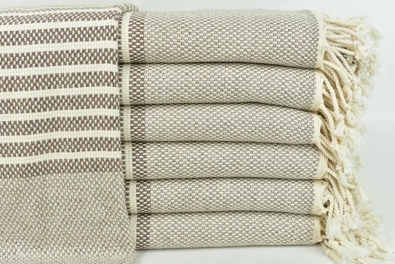 Personalized Turkish Beach Towel Brown Stripes, Beige, 40x75 Inches