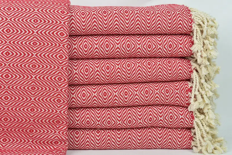 Turkish Beach Towel Red Diamond, 40x71 Inches, Beige