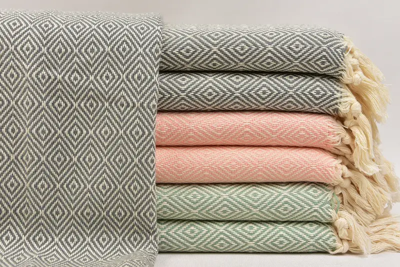 Turkish Hand Towel Diamond Pattern Cotton, Beige, 18x36 Inches