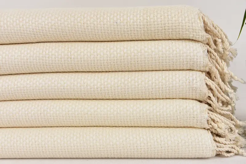 Beach Towel Embroidered Turkish Cotton White Beige, 40x66 Inches
