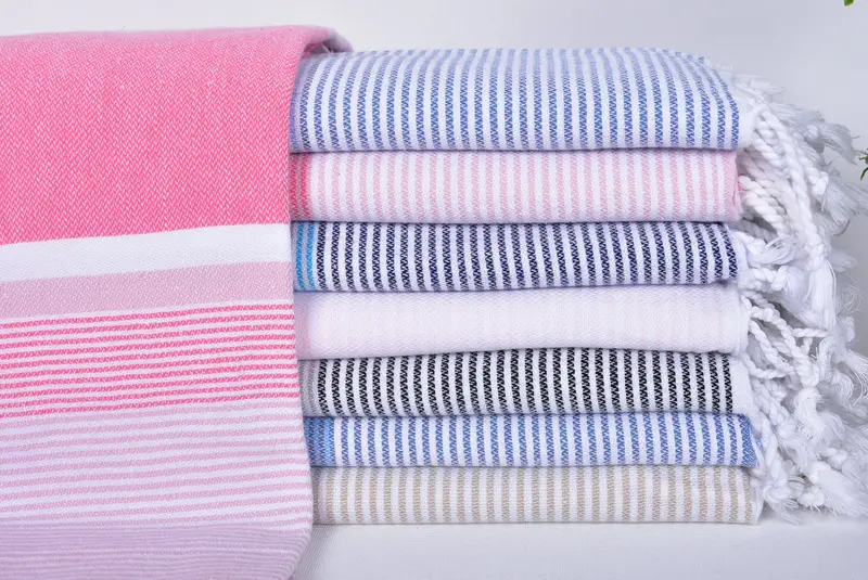 Personalizable Turkish Cotton Beach Towel, Beige Stripes, 40x71 Inches