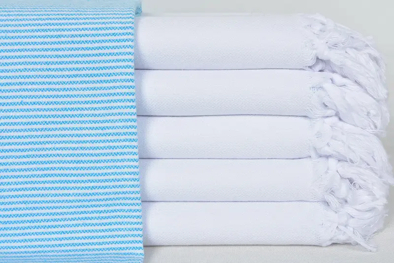Fouta Beach Towel Turquoise Stripes, Turkish Cotton, 40x70 Inches