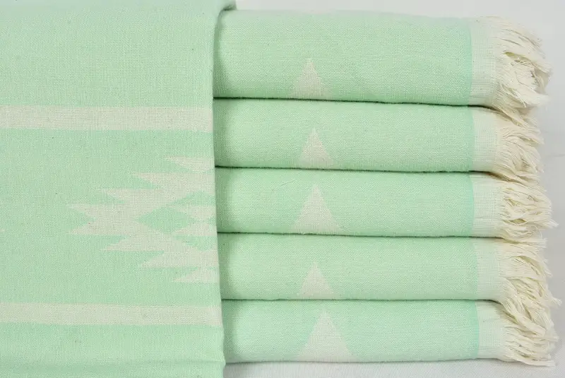 Organic Cotton Towel, Turkish Towel, Green, White, 36x70 inches
