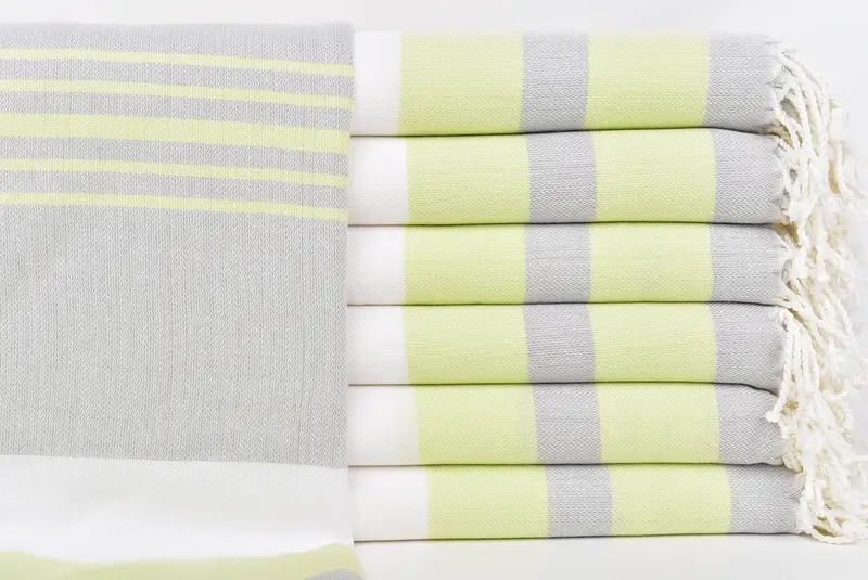 Beach Towel Organic Cotton Gray-Pistachio Green Striped, 40x75 Inches