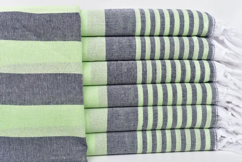 Turkish Beach Towel Pistachio Green-Black Striped, 36x67 Inches