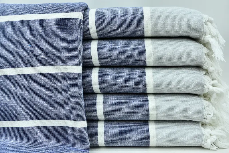 Navy Beach Towel Turkish Cotton Blue Gray, 36x63 Inches