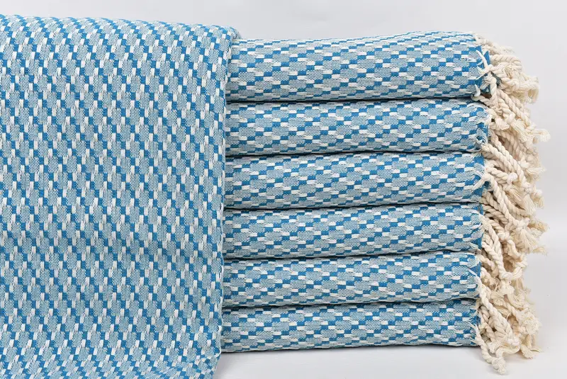 Oversized Turkish Beach Towel, Chevron Petrol Blue, 40x71 Inches