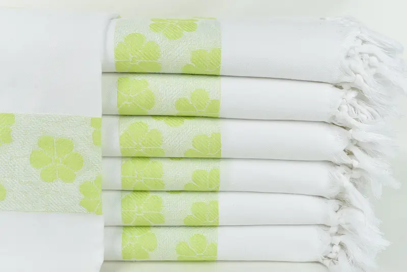 Custom Beach Towel Light Green Floral Patterned, Turkish Cotton, 40x71 Inches
