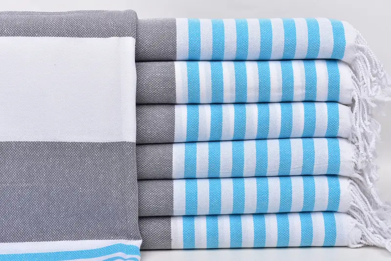 Turkish Beach Towel Dark Gray-Turquoise Striped, 40x71 Inches