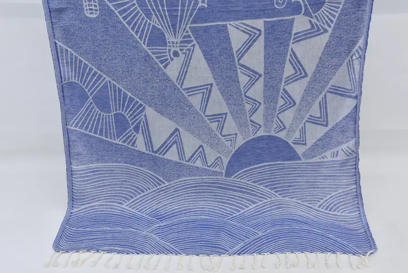 Wedding Gift Turkish Cotton Beach Towel Blue Beige, 40x70 inches