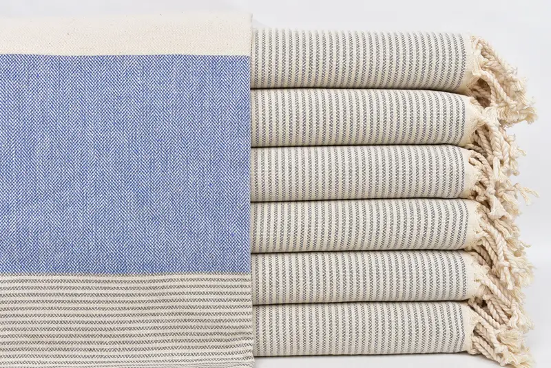Turkish Beach Towel Dark Gray-Sax Blue Striped, 40x71 Inches