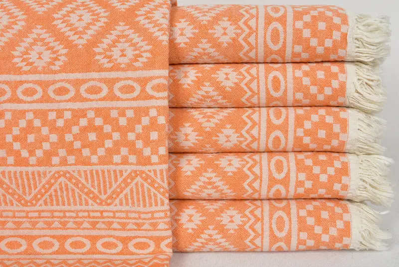 Wedding Gift Towel Organic Cotton Aztec Design Orange, 36x70 inches