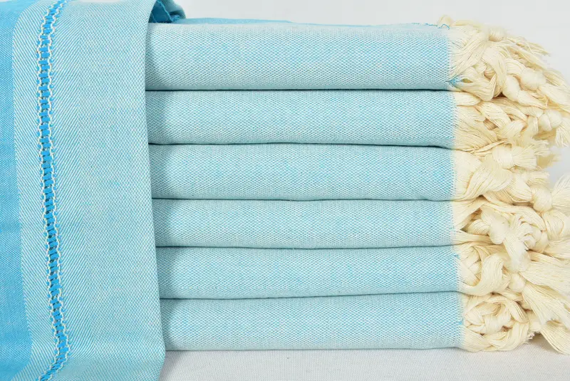 Beach Towel Turkish Cotton Blue Beige, 40x70 Inches