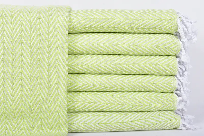 Turkish Towel Organic Beach Towel Beige Chevron, 38x71 Inches