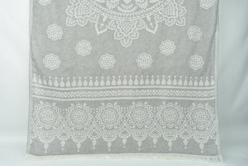 Personalized Gray Floral Beach Towel, Turkish Cotton, 36x73 Inches