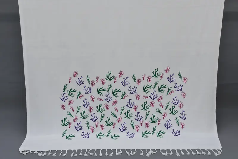 Beach Towel Floral Printed Organic Cotton Pink Green, 40x70 Inches