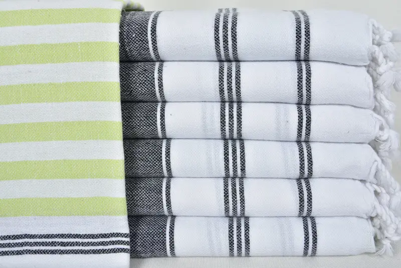 Striped Turkish Towel Green White, 40x70 Inches