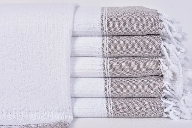 Beach Towel Turkish Cotton Beige Striped, 36x71 Inches