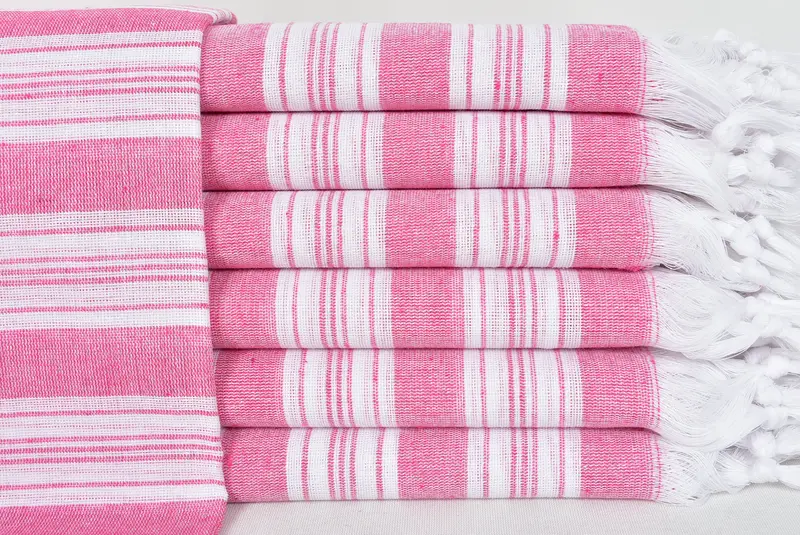 Wedding Gift Towel Dark Pink Striped Cotton Beach Towel 37x65 Inches