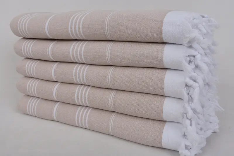 Embroidered Turkish Bath Towel Beige White 36x63 Inches