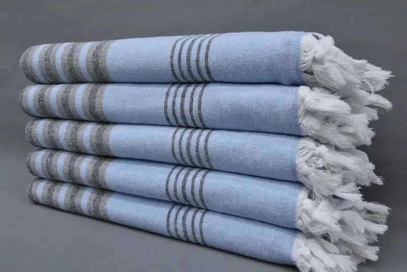 Turkish Bath Towel Blue Cotton Striped, 36x63 Inches