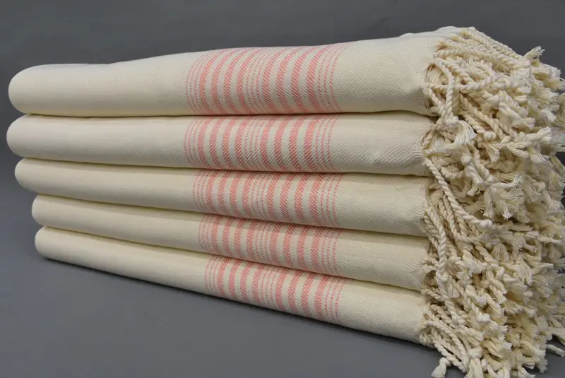 Linen Towel Beige and Purple Stripes, Beach Towel, 40x70 Inches