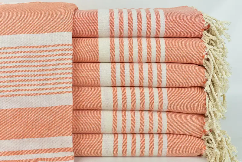 Pesthemal Beach Towel, Orange and Beige Stripes, 38x67 Inches