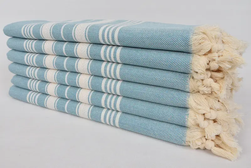 Personalized Turkish Beach Towel Petrol Embroider Blue Beige, 36x70 Inches