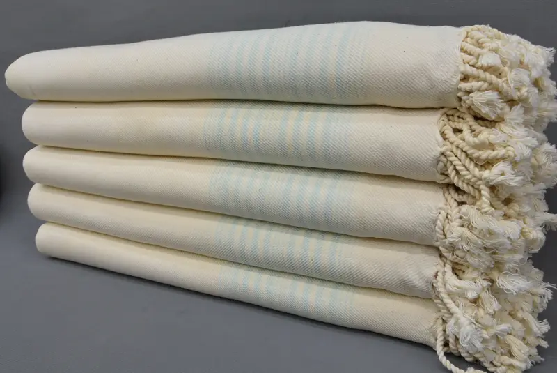 Beach Towel Beige Green Stripes Turkish Cotton, 40x70 Inches