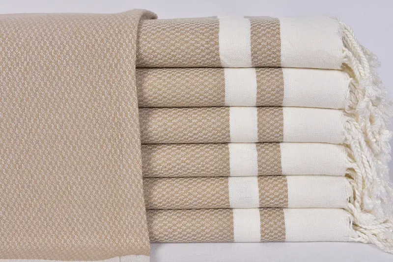 Turkish Towel Beach Towel Striped Beige Cotton 36x71 Inches