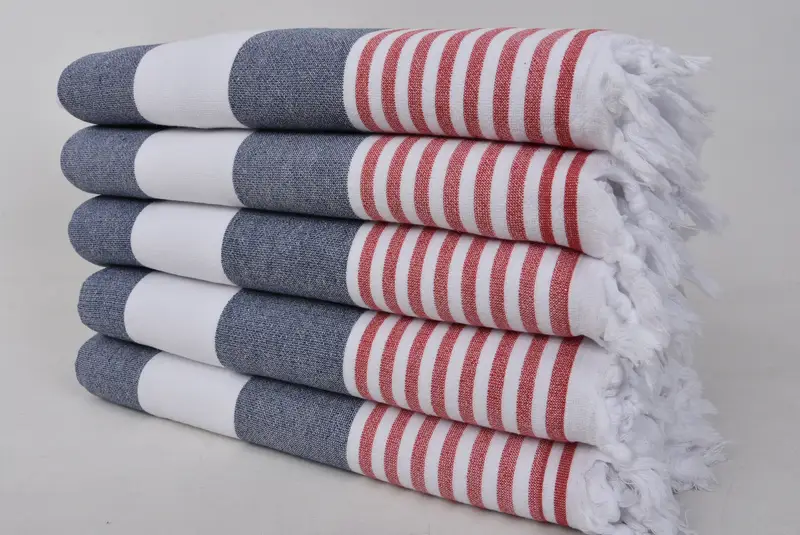 Embroidered Turkish Beach Towel Blue Red, 36x63 Inches