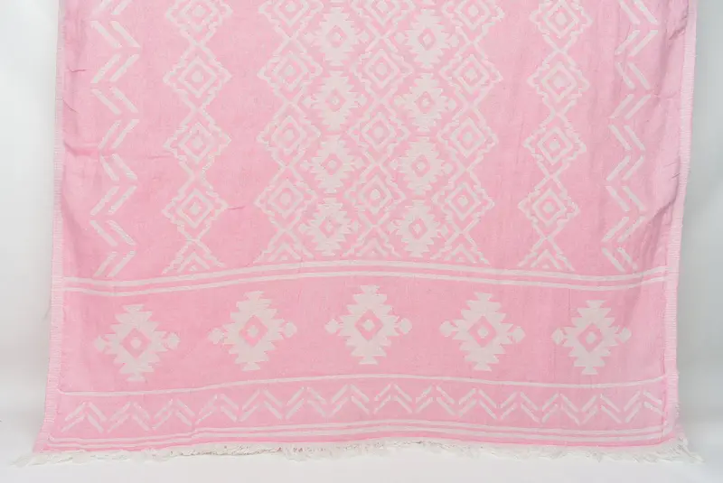 Embroidered Beach Towel Turkish Cotton Pink Beige, 40x73 Inches