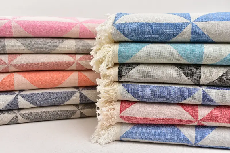 Personalized Turkish Beach Towel, Geometric Embroidered Cotton, Beige, 40x71 Inches