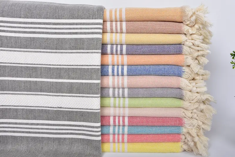 Turkish Beach Towel Beige, 36x71 Inches, Cotton, Chevron Pattern