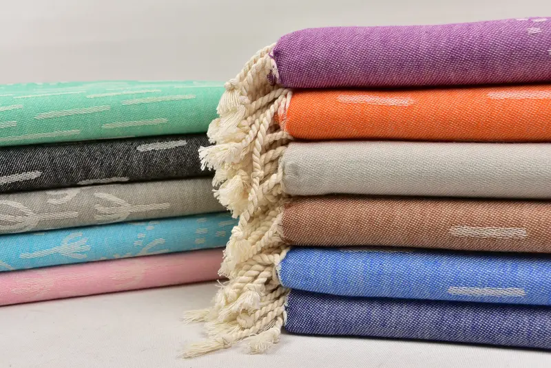 Turkish Beach Towel Beige Patterned Cotton, 40x71 Inches