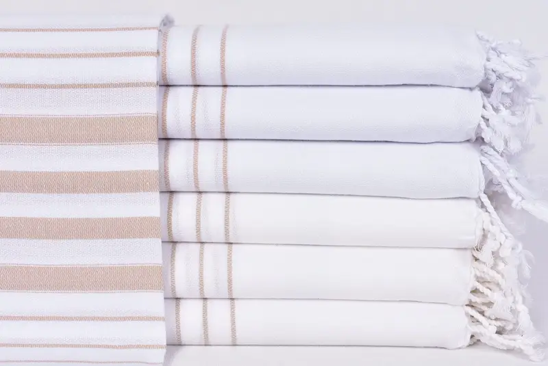 Beach Towel Turkish Cotton Beige Stripes, 36x71 Inches