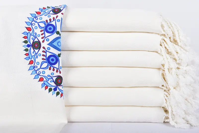 Beach Towel Personalized Turkish Cotton Floral Pattern, Beige, 40x71 Inches