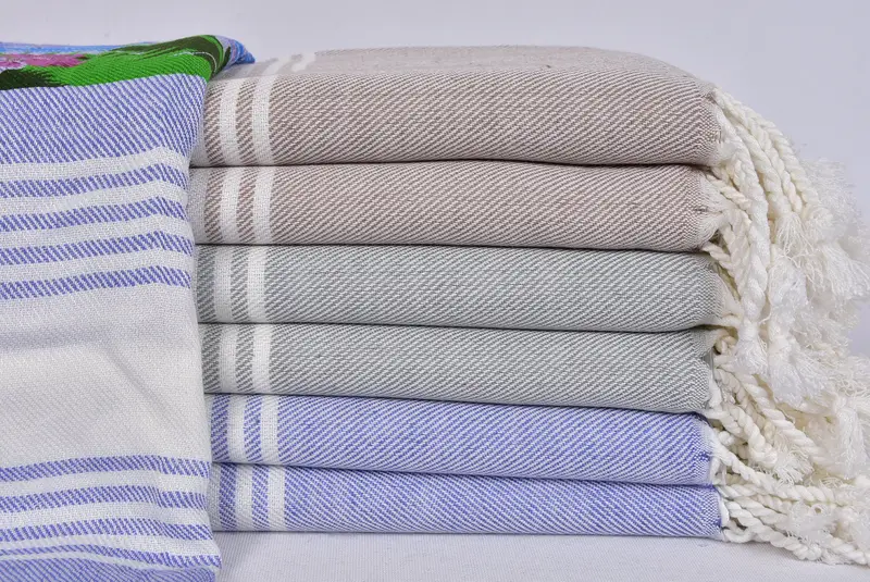 Turkish Towel Beach, Striped Beige, Cotton, 36x71 Inches