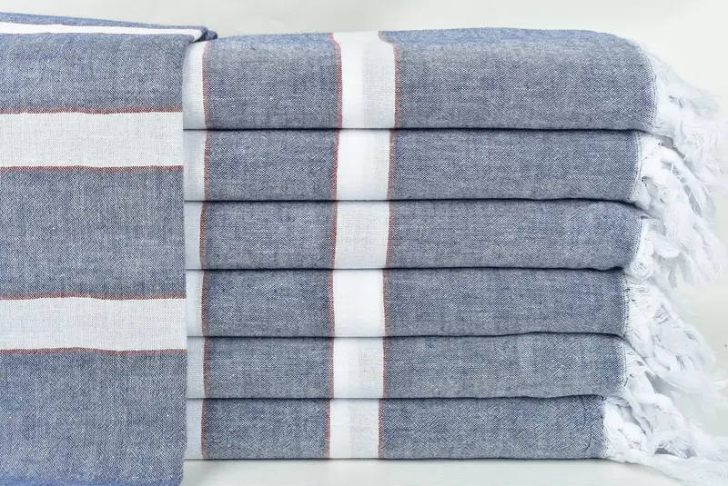 Turkish Towel Striped Navy Blue-Red, 40x71 Inches