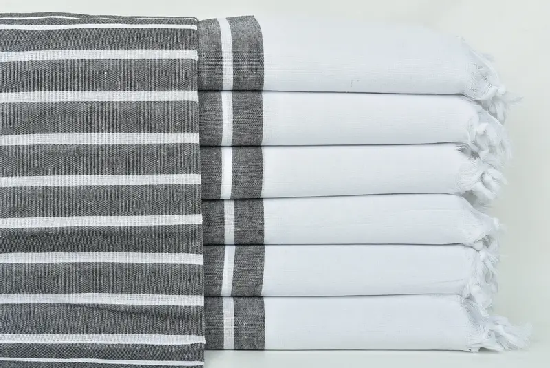Beach Towel Turkish Cotton Black Stripes, Beige, 40x71 Inches