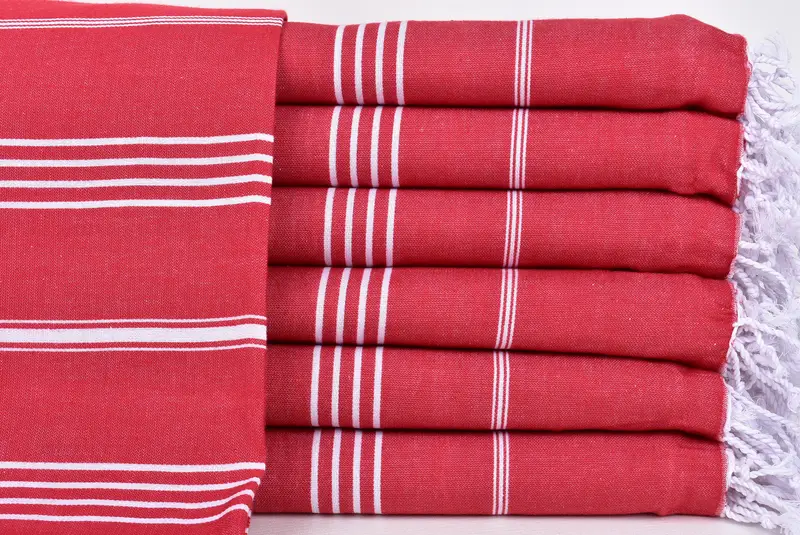 Wholesale Personalized Turkish Beach Towel, Red and Beige Stripes, 38x73 Inches