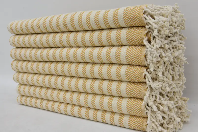 Turkish Beach Towel Yellow Beige Stripes, 40x70 Inches