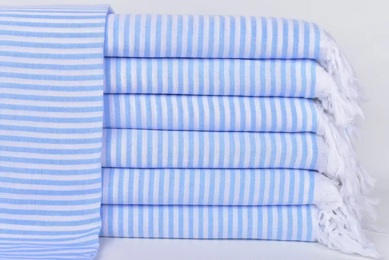 Wedding Gift Organic Beach Towel Light Blue Striped, 40x63 Inches