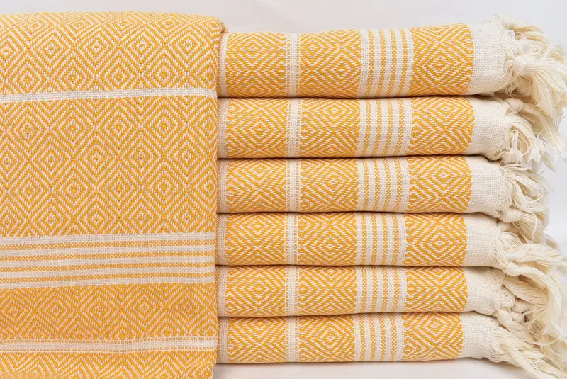 Turkish Towel Beach Towel Mustard Diamond, Beige, 38x69 Inches