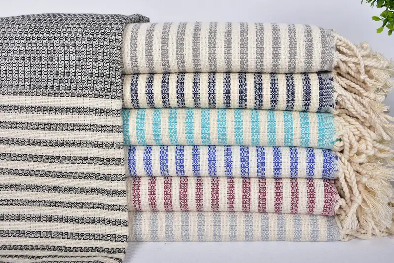 Beach Towel Personalizable Turkish Cotton Beige Stripes, 40x71 Inches
