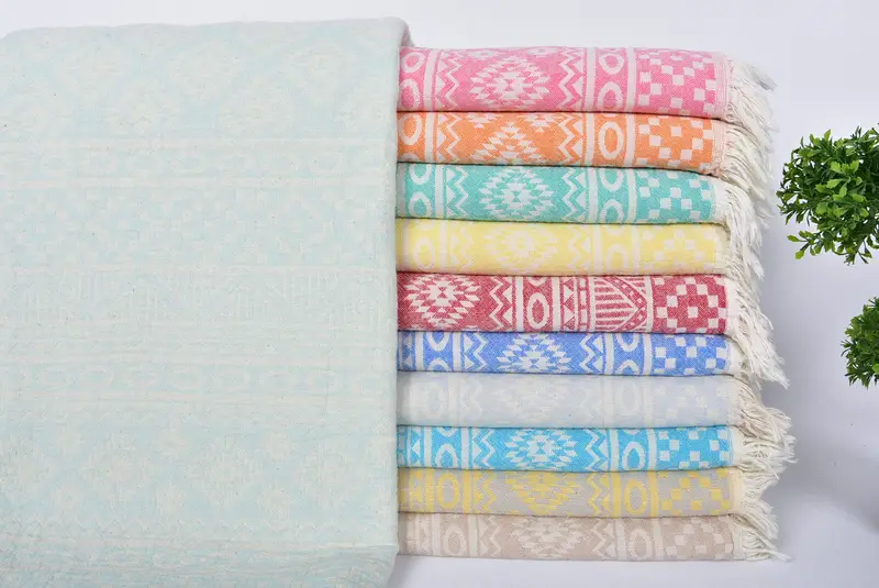 Personalizable Beach Towel Turkish Cotton Beige Geometric, 36x71 Inches