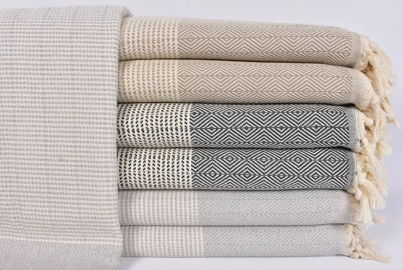 Large Turkish Cotton Beach Towel Beige, 71x79 Inches